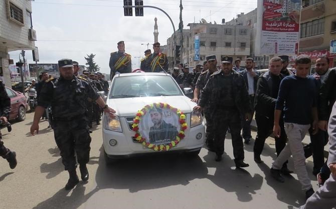 وشارك في تشيع جثمان الشهيد خلال "مراسم عسكرية" النائب الأول في المجلس التشريعي د. أحمد بحر ومدير عام قوى الأمن الداخلي اللواء توفيق أبو نعيم وقيادة جهاز الأمن والحماية وأجهزة وزارة الداخلية والامن الوطني وعدد من الشخصيات الوطنية.