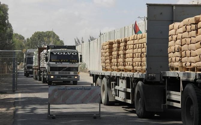 وذكر مدير معبر كرم أبو سالم أنه سيتم إدخال مواد بناء منوعة لصالح المتضررين من ضمنها إسمنت "سيلو" وعادي، و "40" شاحنة محملة بالحصمة للمشاريع القطرية، إلى جانب إدخال "55" شاحنة محملة بالإسمنت للمشاريع التركية.