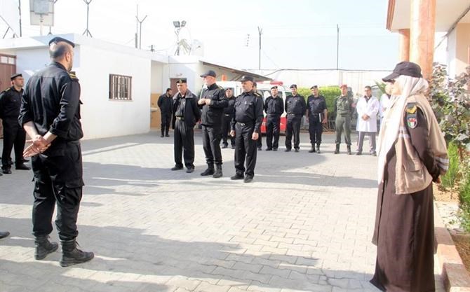 نظم مركز إصلاح وتأهيل الشمال "سجن أبو عبيدة" بمحافظة الشمال, أمس الأحد, طابور أركان لكوادره في مقره الرئيسي بمدينة بيت لاهيا.
