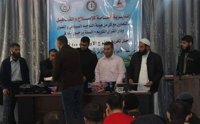 كرَّم مركز إصلاح وتأهيل غزة _ أنصار_ بالتعاون مع هيئة التوجيه السياسي والمعنوي 100 نزيلاً ضمن مشروع حفظ أجزاء من القرآن الكريم للنزلاء والدورات التأهيلية والفقهية.