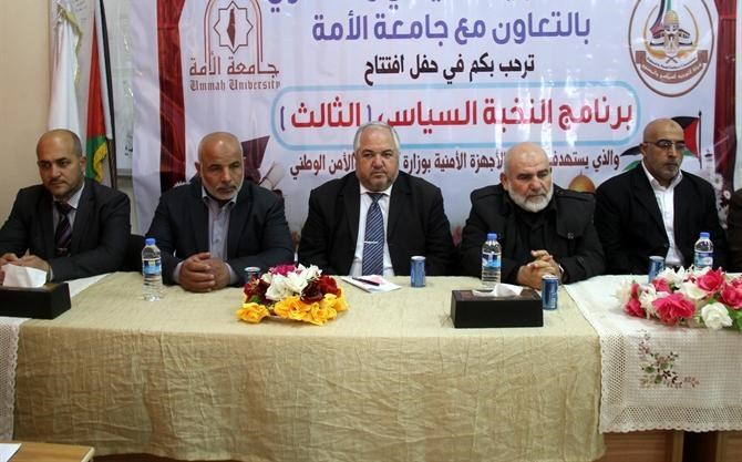 افتتحت هيئة التوجيه السياسي والمعنوي اليوم الخميس برنامج النخبة السياسي الثالث لـ85 ضابطا من أصحاب الرتب السامية في وزارة الداخلية والأمن الوطني، وذلك في مقر جامعة الأمة بالزهراء جنوب مدينة غزة.