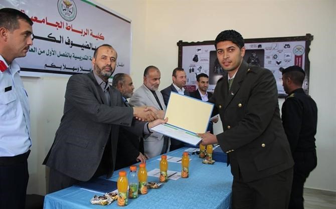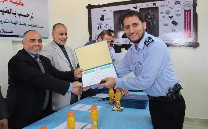 وحضر حفل التكريم عميد الكلية د. كمال تربان وأ. أحمد زعرب مدير عام هيئة الاعتماد والجودة بوزارة التربية والتعليم العالي، ود. إبراهيم حبيب مدير إدارة الشؤون الاكاديمية ومجلس الكلية وعدد من الضباط والمدرسين.