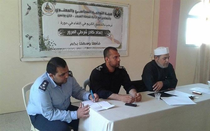 افتتحت هيئة التوجيه السياسي والمعنوي في محافظة خانيونس جنوب قطاع غزة, بالتعاون مع إدارة شرطة المرور بالمحافظة دورة بعنوان "إعداد كادر شرطي المرور".