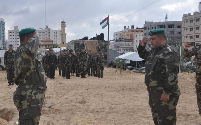 نظمت قيادة قوات الأمن الوطني الفلسطيني, صباح أمس الأحد, طابور أركان لكلٍّ من الكتيبة الرابعة والخامسة والسادسة, وكتيبة الفتوة والإداريين العاملين بمقر السرايا, وذلك بمقر قيادة القوات "السرايا" وسط مدينة غزة.