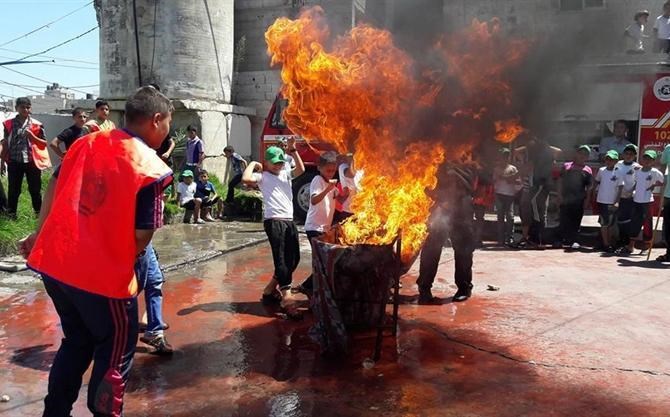 عقد جهاز الدفاع المدني في محافظة رفح دورة تدريبية في "كيفية التعامل مع الحرائق وإطفائها" للأشبال المشاركين مخيمات انتفاضة القدس .