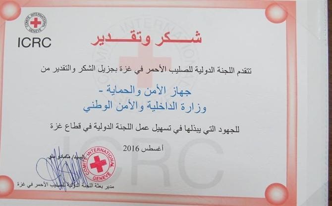 وفي ختام الزيارة قدمت أ.غارسيا للعميد أبو سلطان شهادة شكر وتقدير على الجهود التي يبذلها جهاز الأمن والحماية في تسهيل مهام عمل اللجنة الدولية في قطاع غزة.