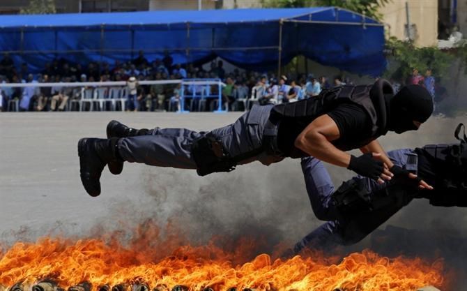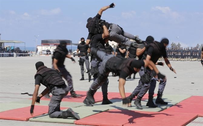 وفي ساحة الاحتفال بدأت أجساد الخريجين المتلاحمة، حيث تكمن عزيمة الرجال الأبطال، بالتقدم لترسم نجمة استعراضيي في قلبها الرقم 30 رمزاً لترتيب الدورة تأهيل الضباط التي تم تخريجها بالأمس.