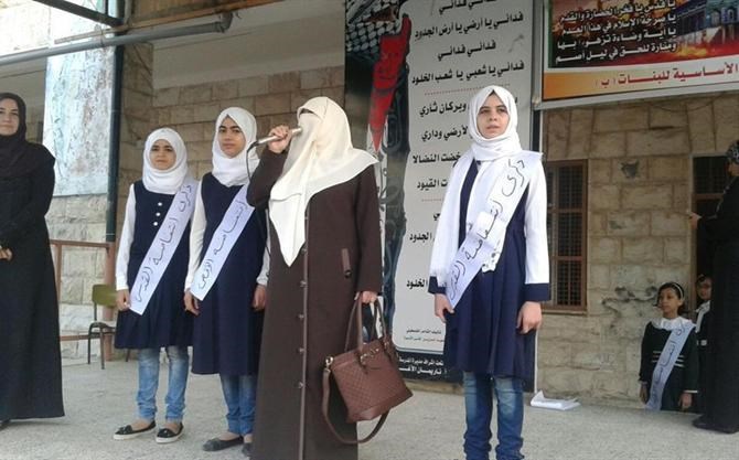 شاركت وحدة العمل النسائي بخانيونس في وقفة طلابية بمدرسة حيفا دعمًا لانتفاضة القدس وحملت عنوان "انتفاضة مستمرة حتى تعود الارض حرة".