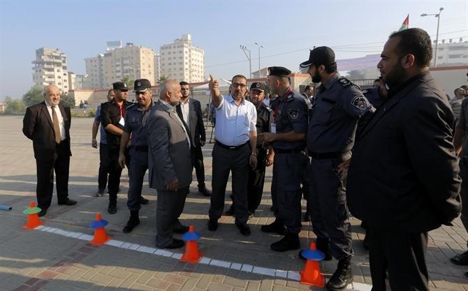 وتوافد مئات المتسابقين إلى مقر المديرية العامة للتدريب بموقع أنصار غرب مدينة غزة؛ للتنافس على وظيفة أفراد بوزارة الداخلية.