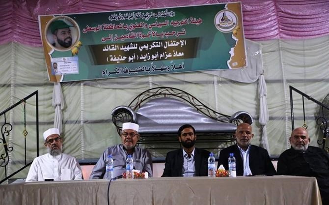 نظَّمت هيئة التوجيه السياسي والمعنوي، بالمحافظة الوسطى احتفالاً تكريمياً، لعائلة الشهيد معاذ زايد مدير توجيه الوسطى سابقاً، ومدير المعهد الحكومي بالتوجيه والذي استشهد في العدوان الأخير على قطاع غزة.