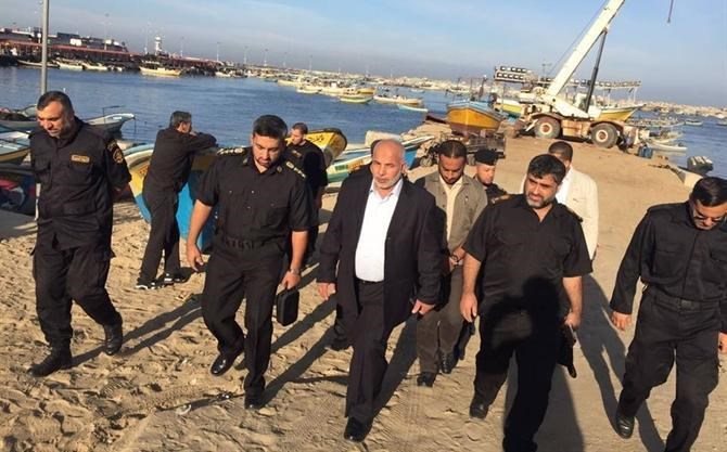 نظم جهاز الشرطة البحرية الفلسطيني صباح أمس جولة للواء توفيق أبو نعيم مدير عام قوى الأمن في ميناء الصيادين بمدينة غزة.