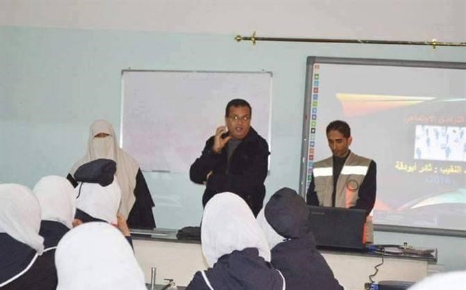 نظمت المباحث العامة في شرطة محافظة خانيونس -قسم مباحث الشرقية - بالتعاون مع مديرية التربية والتعليم في شرق خانيونس محاضرة لطالبات الثانوية العامة في مدرسة الخنساء الثانوية حول مخاطر مواقع التواصل الاجتماعي.
