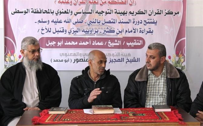 افتتحت هيئة التوجيه السياسي والمعنوي في محافظة الوسطى دورة سند متصل بالنبي صلى الله عليه وسلم بقراءة الإمام ابن كثير براوييه البزي للنقيب عماد أبو جبل مدير مركز القران الكريم بالمحافظة.