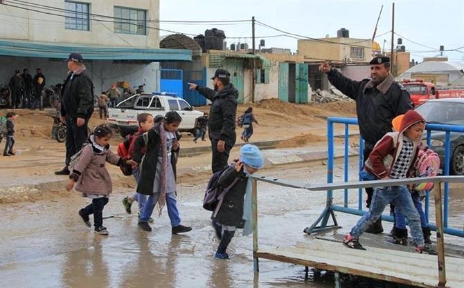تواصل شرطة المرور الفلسطينية نشر عناصرها، في كافة الطرقات والمفترقات في جميع محافظات قطاع غزة خلال "المنخفض الجوي"، لـ تنظيم الحركة المرورية ومنع الازدحام في الشوارع.