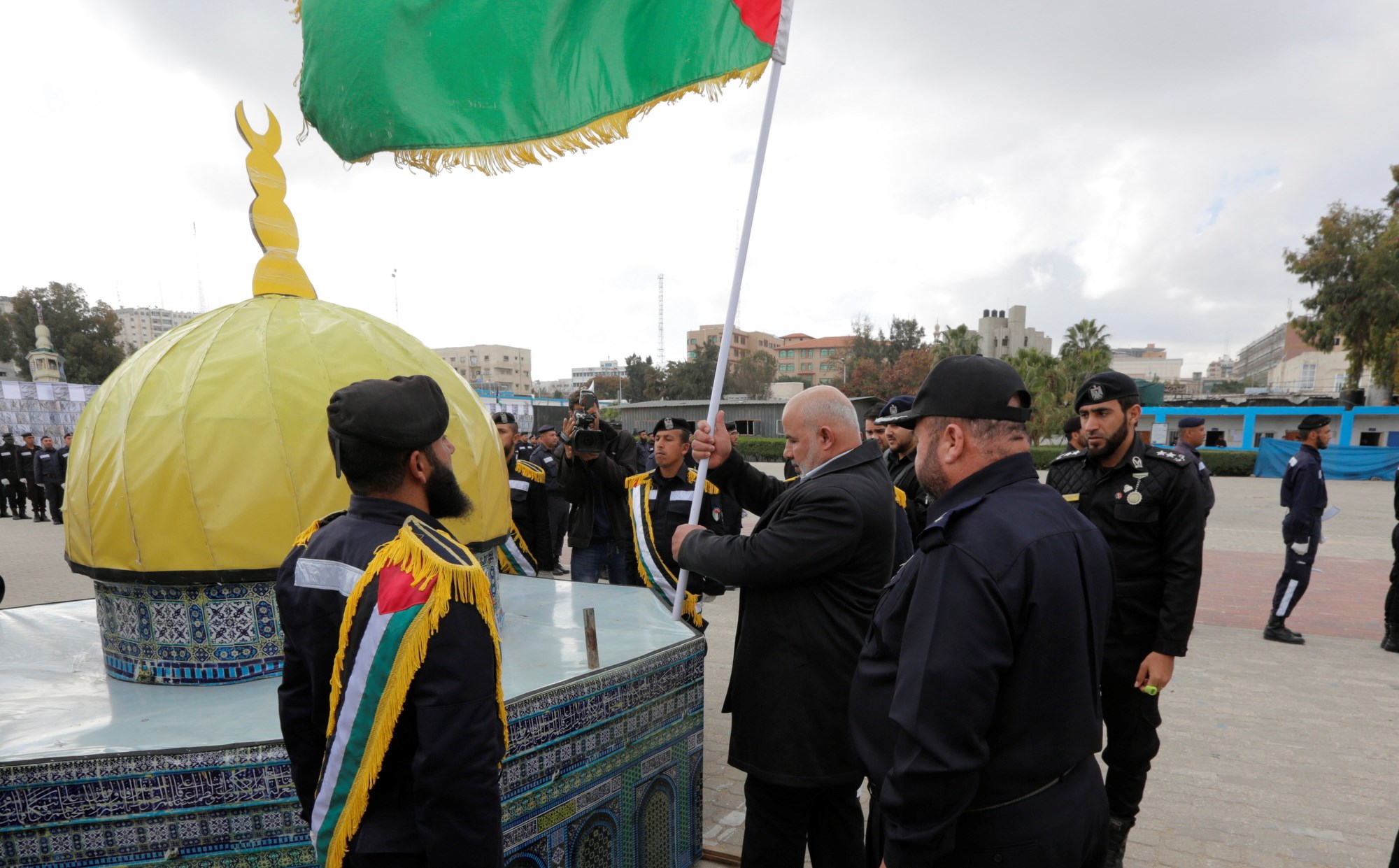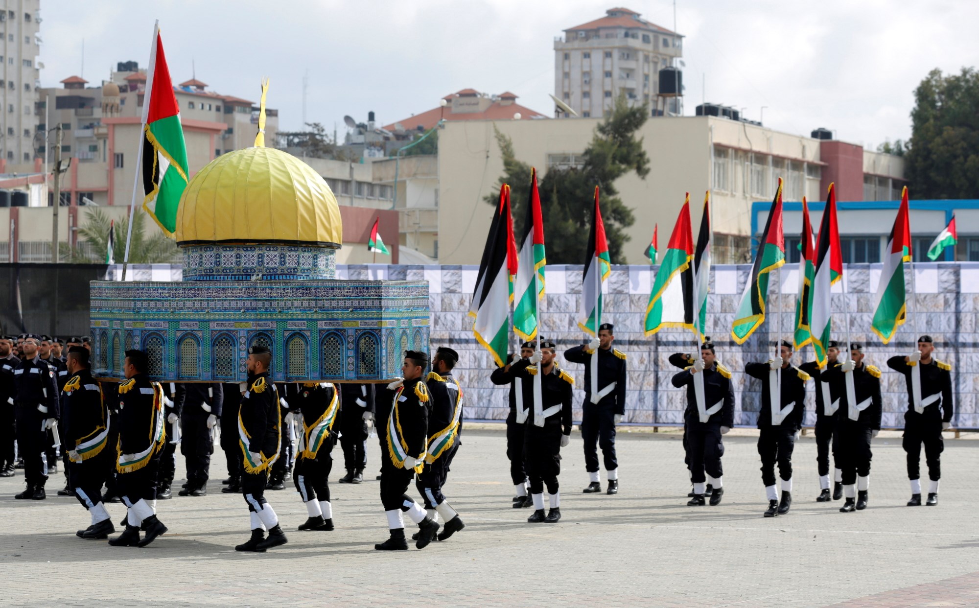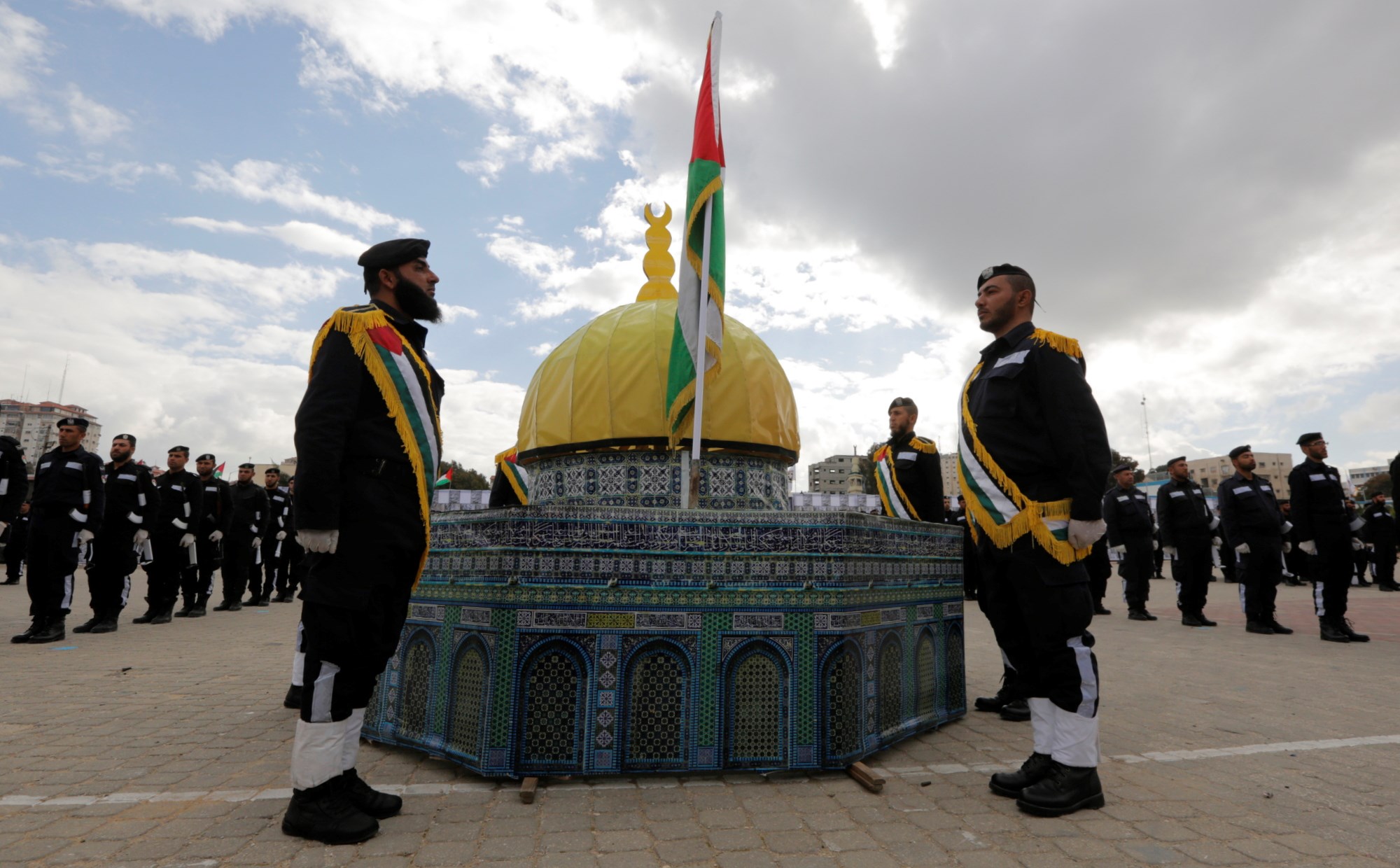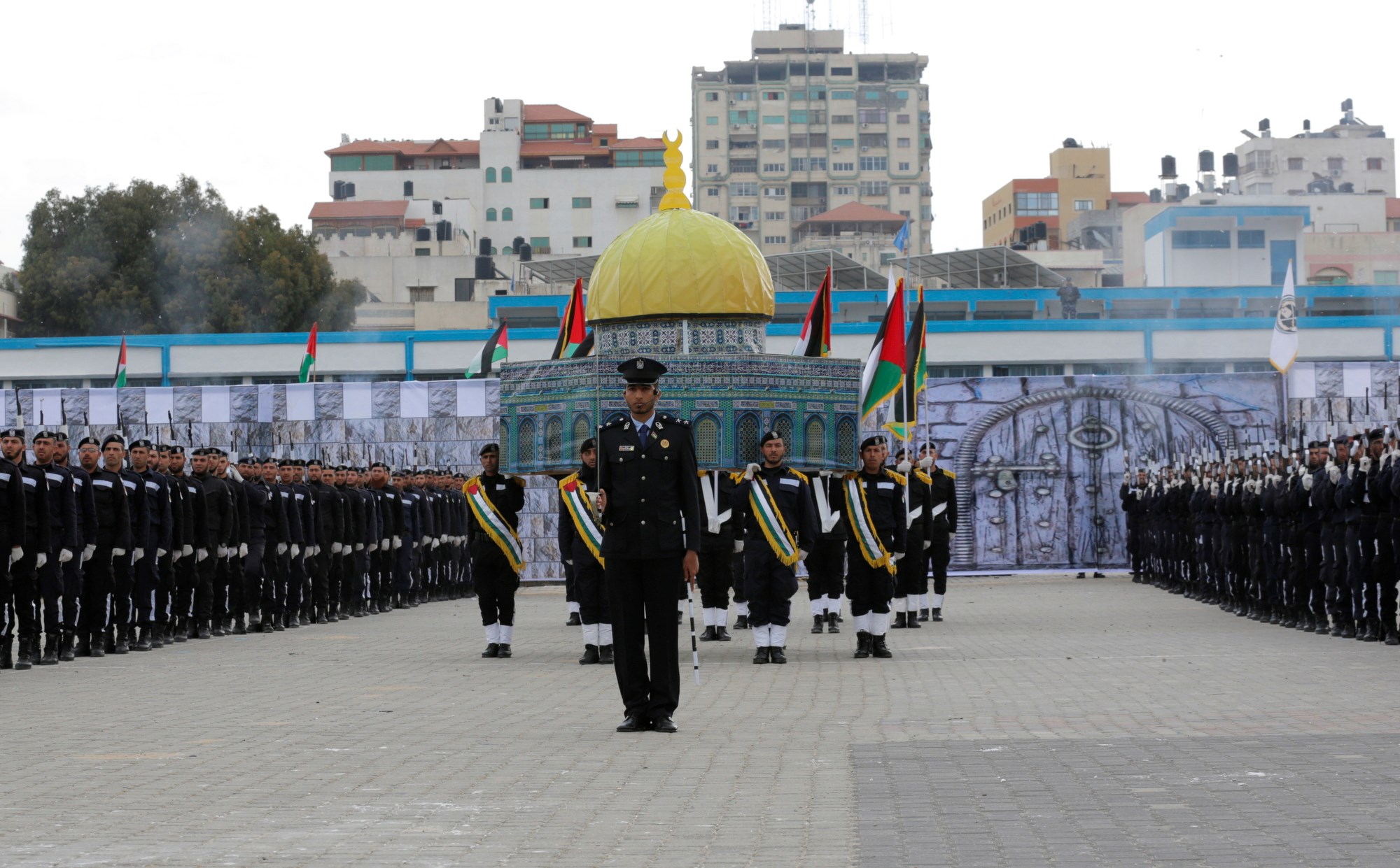 تخرج الشرطة الفلسطينية اليوم في غزة في هذا اليوم حاملةً قبة الصخرة لتؤكد للقاصي