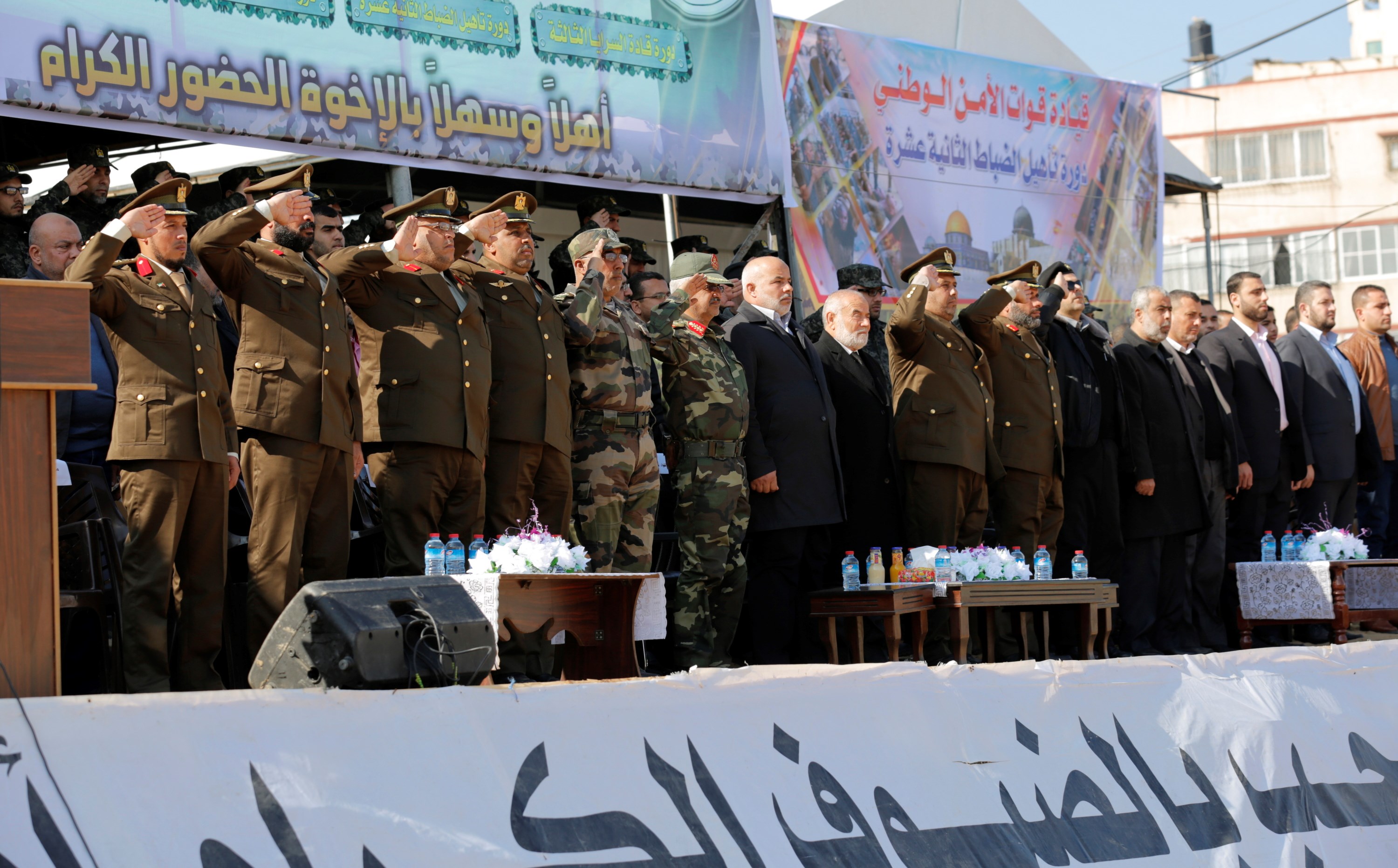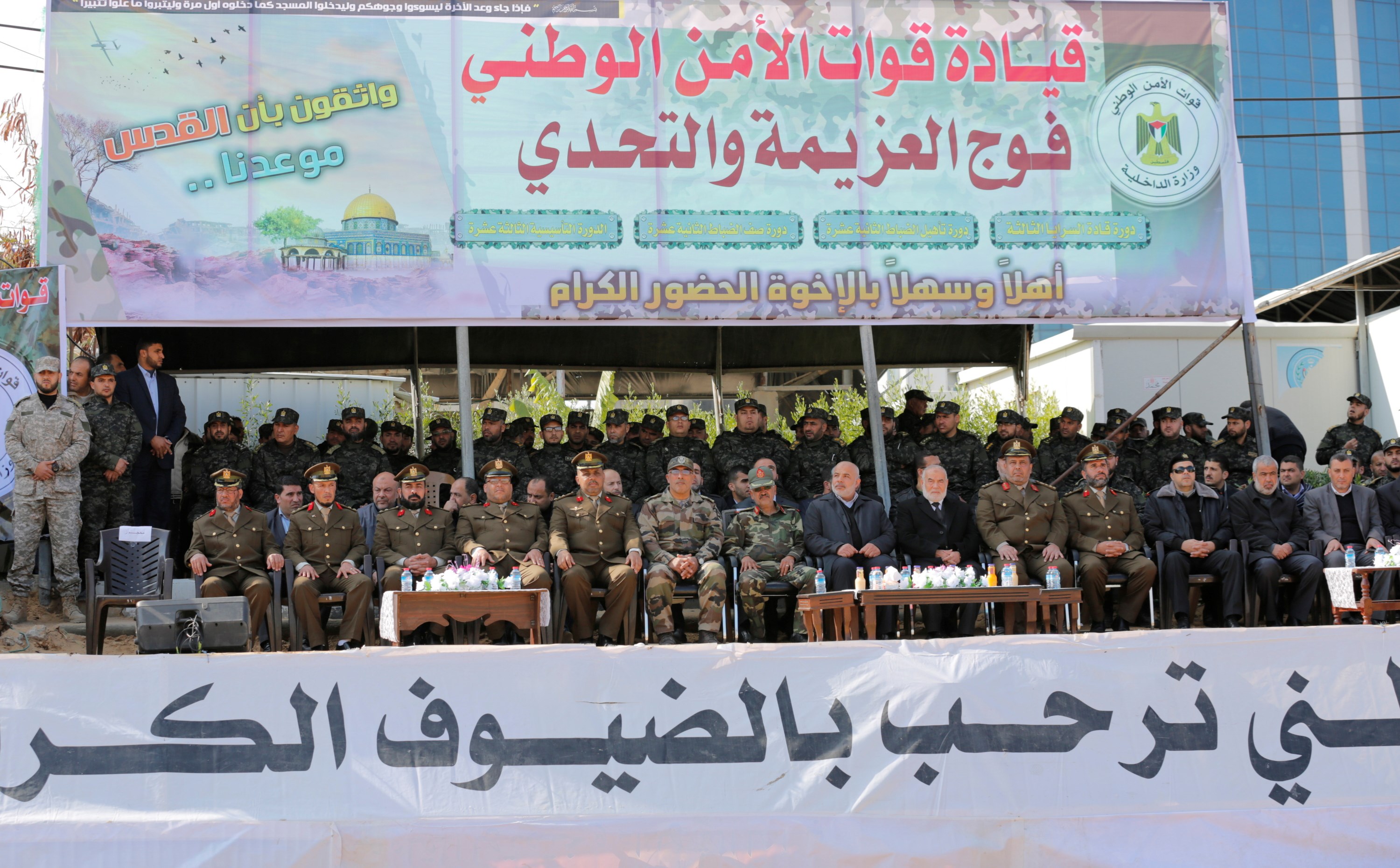 وحضر حفل التخريج كلٌ من د. أحمد بحر النائب الأول لرئيس المجلس التشريعي واللواء توفيق أبو نعيم وكيل وزارة الداخلية والأمن الوطني واللواء حسين أبو عاذرة قائد قوات الأمن العام وجيش التحرير والعميد نعيم الغول قائد قوات الأمن الوطني، ولفيف من قيادات الأجهزة الأمنية وممثلو الفصائل والقوى الوطنية والإسلامية.