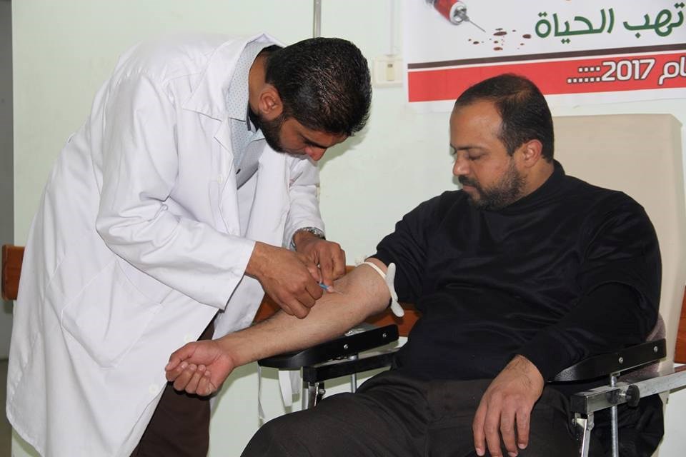 نظم المستشفى الجزائري بالتعاون مع بنك الدم بالمستشفى الاوروبي بمحافظة خانيونس اليوم الاثنين، حملة للتبرع بالدم تحت شعار "التبرع بالدم.. صدقة جارية تهب الحياة".