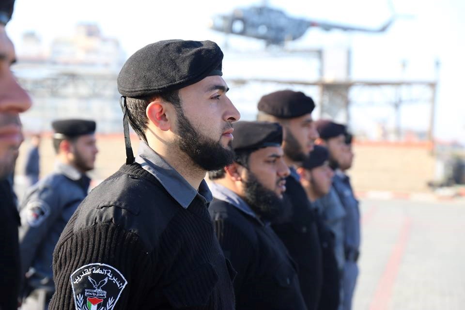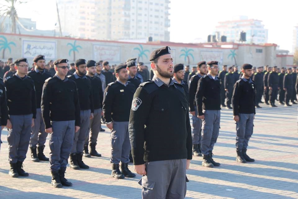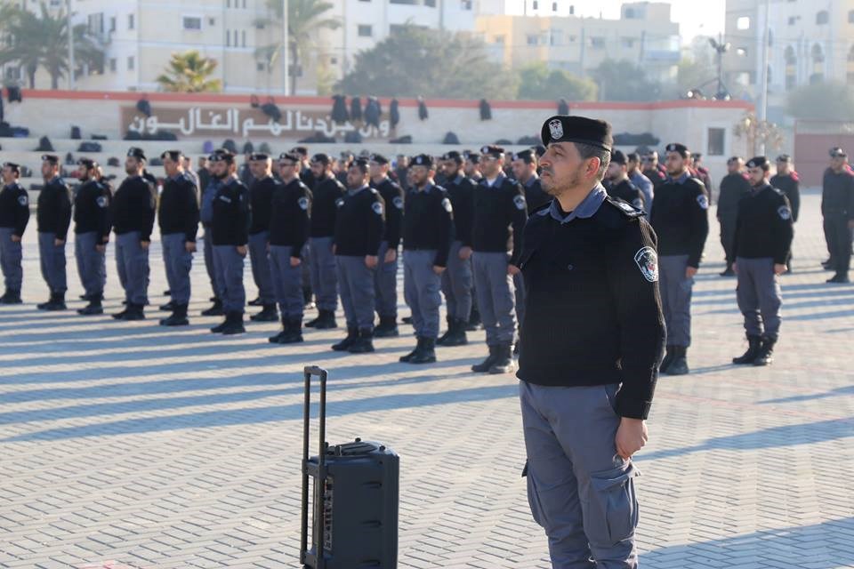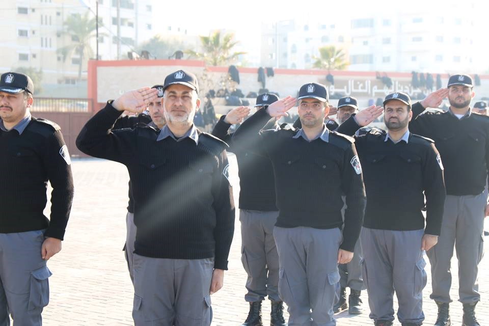 أمس الأثنين، طابور أركان لضباطها وأفرادها وطلابها في مقرها غرب مدينة غزة.
