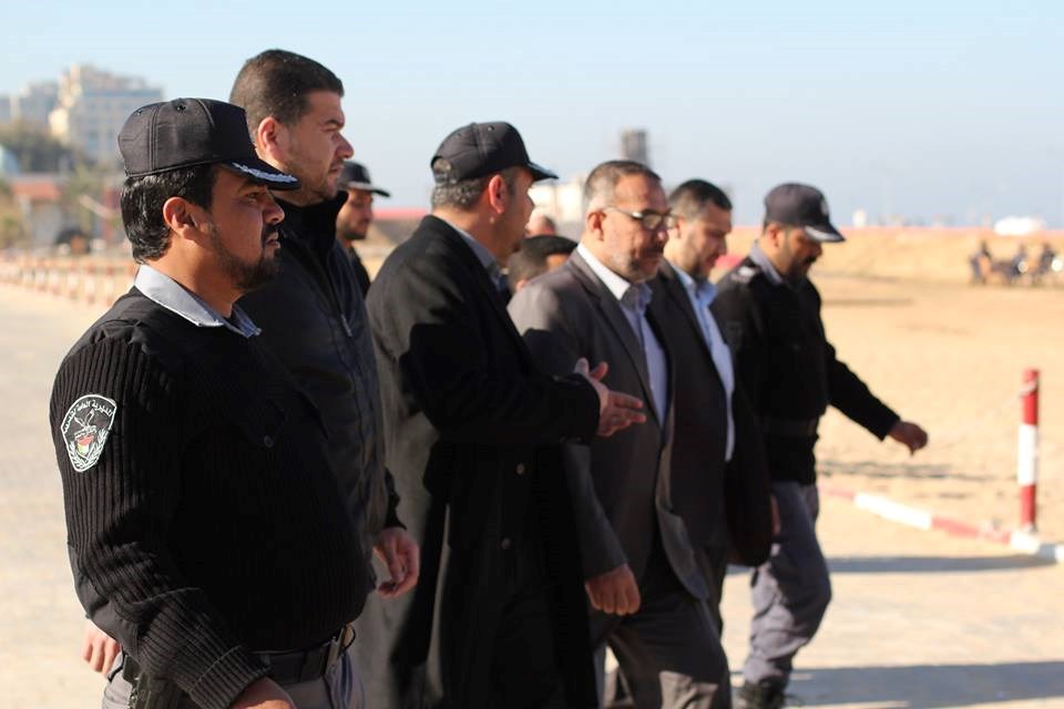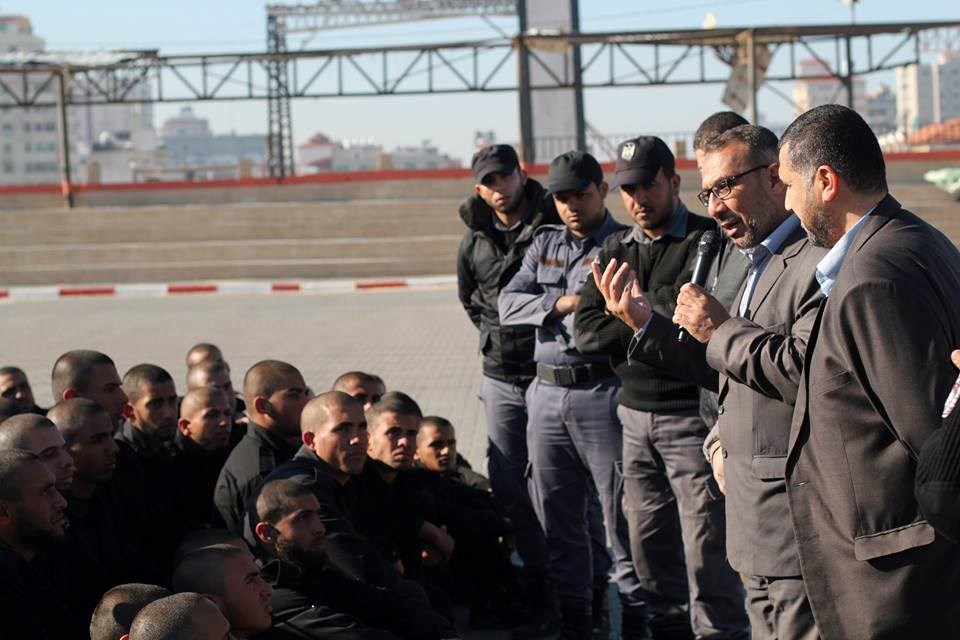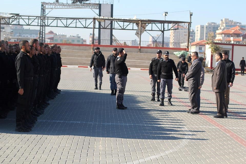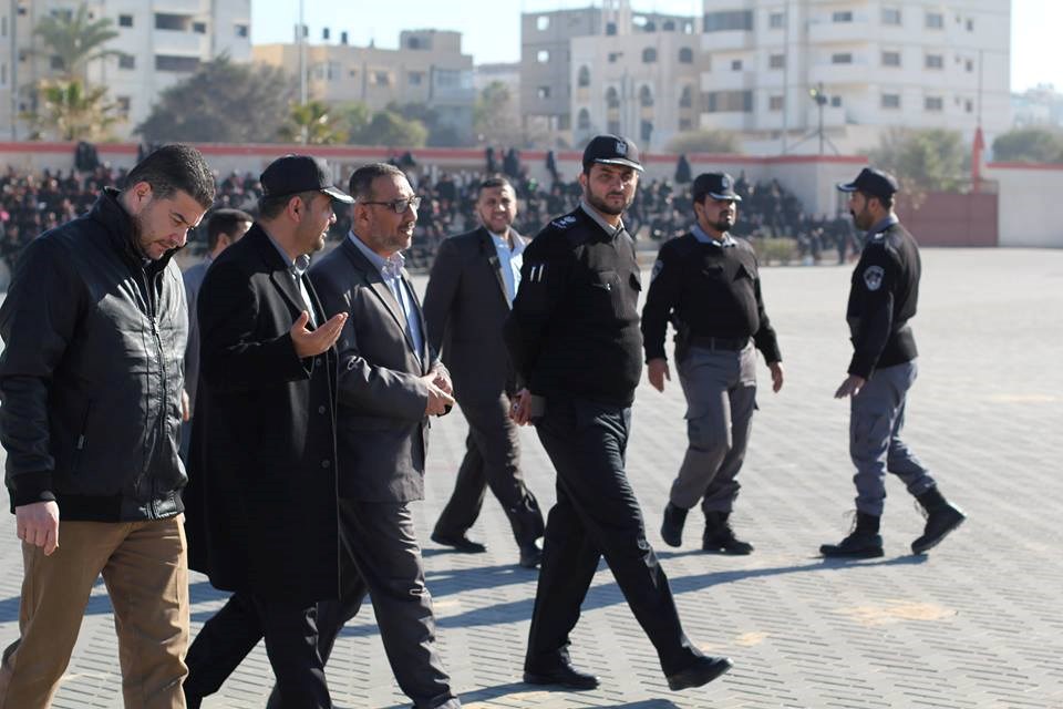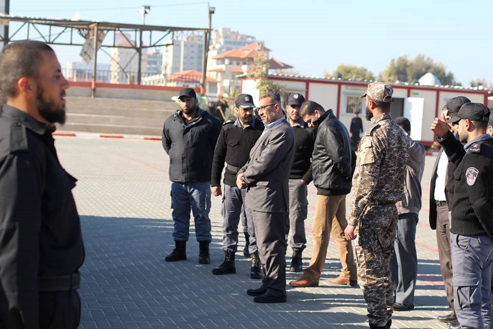 المراقب العام لوزارة الداخلية والأمن الوطني العميد محمد لافي وعدد من ضباط مكتب المراقب العام بغزة، أمس الثلاثلاء، مقر المديرية العامة للتدريب.
