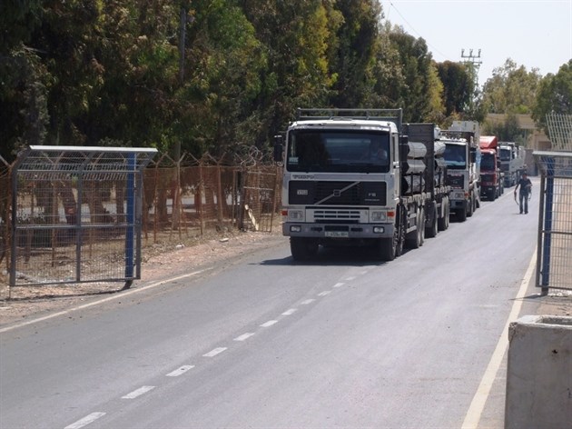 معبر كرم أبو سالم التجاري لإدخال "380" شاحنة فقط محملة بالبضائع التجارية