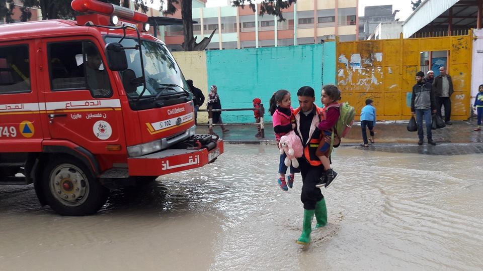 بفعل شدة الرياح من مخزن بضائع بمنطقة أبراج تل الهوا غرب غزة، وعملت على مساعدة الطلاب