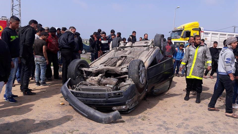 أخلت طواقم الإسعاف والإنقاذ التابعة للمديرية العامة للدفاع المدني ثلاث إصابات امرأتين والسائق بحالات متوسطة ،ظهر اليوم الخميس ، ونقلهم إلى مستشفى شهداء الاقصى إثر إصابتهم بحادث سير ذاتي على طريق صلاح الدين بالقرب من مفترق المطاحن وسط قطاع غزة.