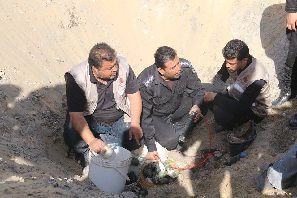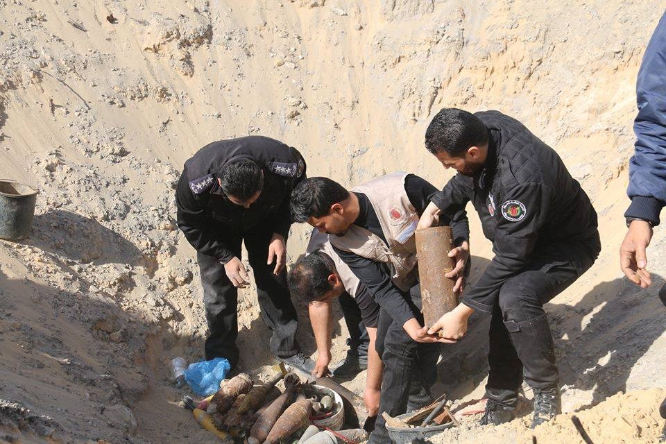 الذخائر العسكرية في موقع الاتلاف بالإضافة إلى تأمين مواقع الاتلاف وإجلاء المواطنين