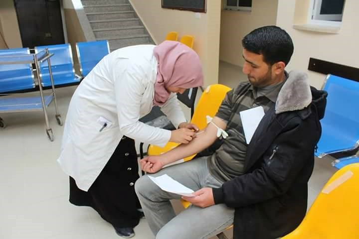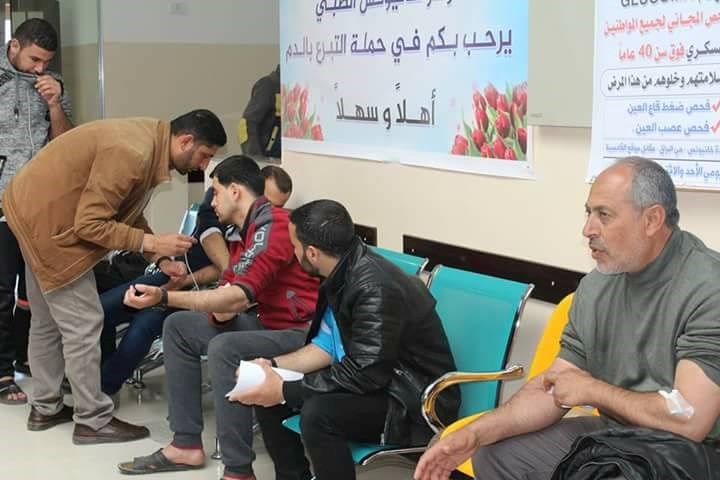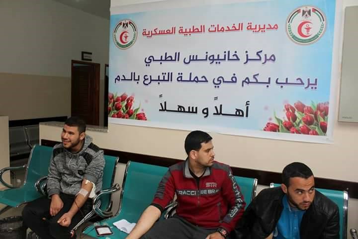 للخدمات الطبية العسكرية حملة للتبرع بالدم في مركز خانيونس الطبي غرب المحافظة.