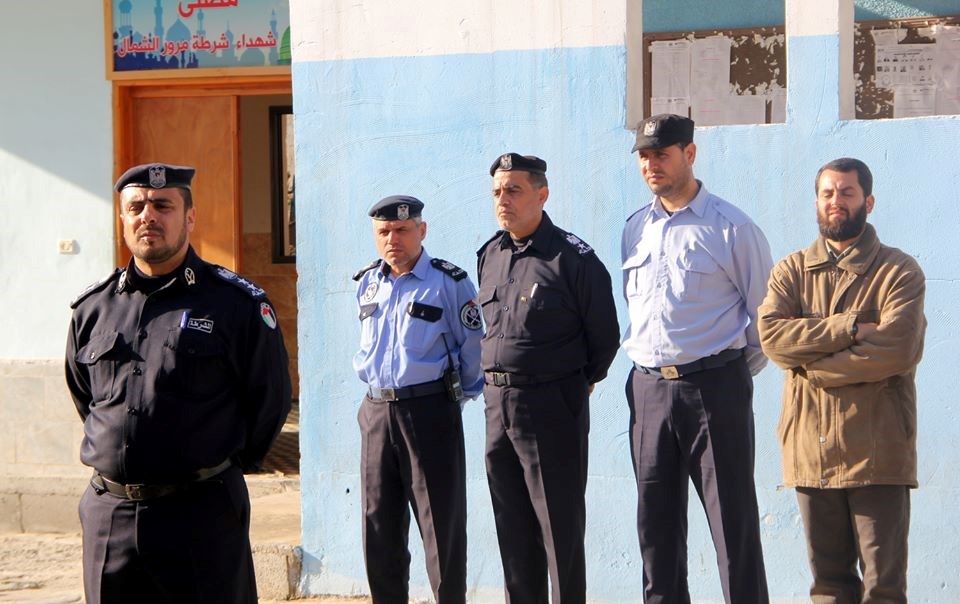 الرائد عطاالله جمعة والشيخ هاني منصور من وزارة الاوقاف وضابط وصف ضابط مرور الشمال.