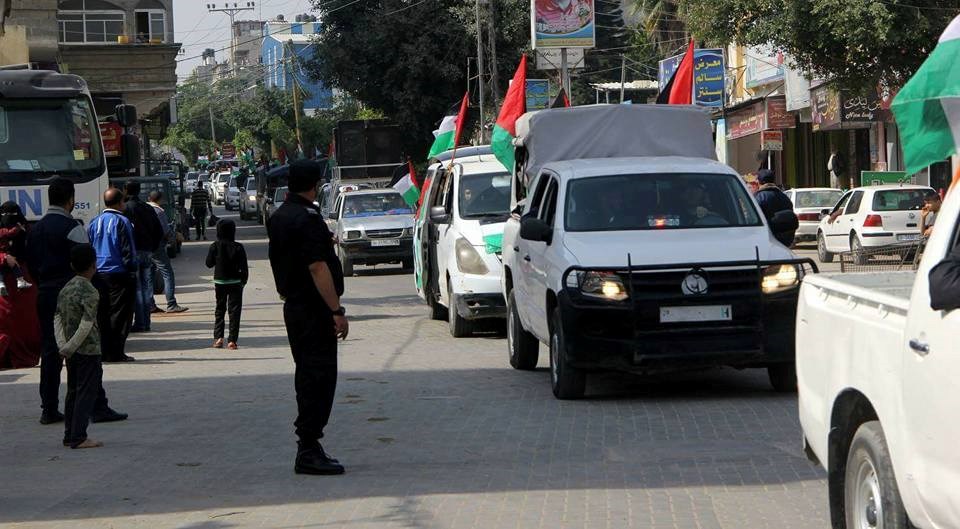 وانطلق المسير المحمول من موقع عبد العزيز الرنتيسي بشمال غزة حيث تحركت الجيبات والسيارات الشرطية المزينة بأعلام فلسطين ضمن عرض عسكري جاب شوارع ومناطق محافظة شمال.