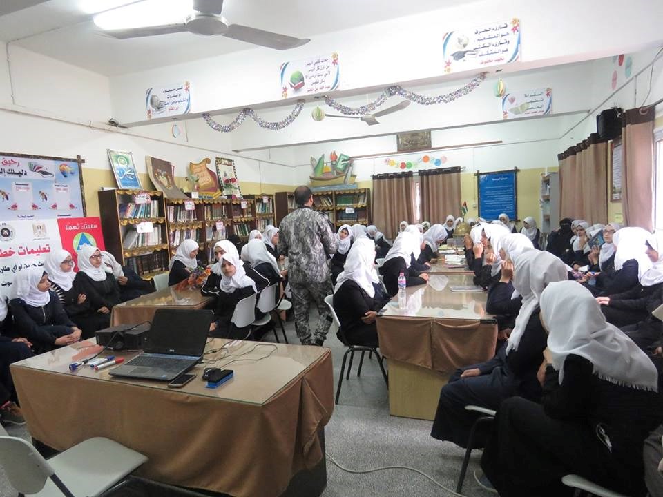 نظمت المديرية العامة للدفاع المدني في محافظة خانيونس، سلسلة محاضرات عن السلامة المنزلية لـ400 طالبة في مدرسة الخنساء الثانوية.