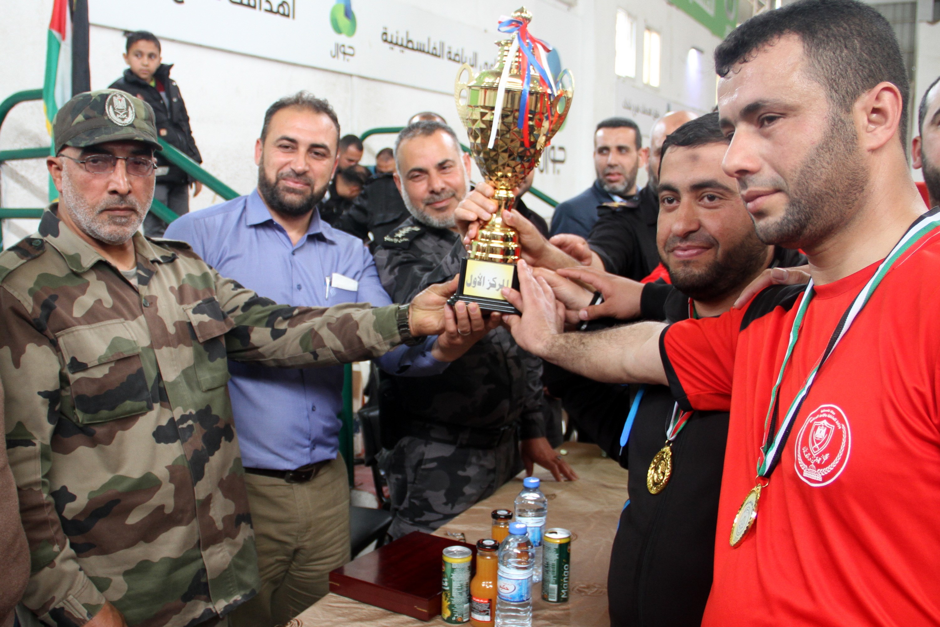 والميداليات الذهبية والكأس للفريق الفائز بالمركز الأول الأمن والحماية والميداليات