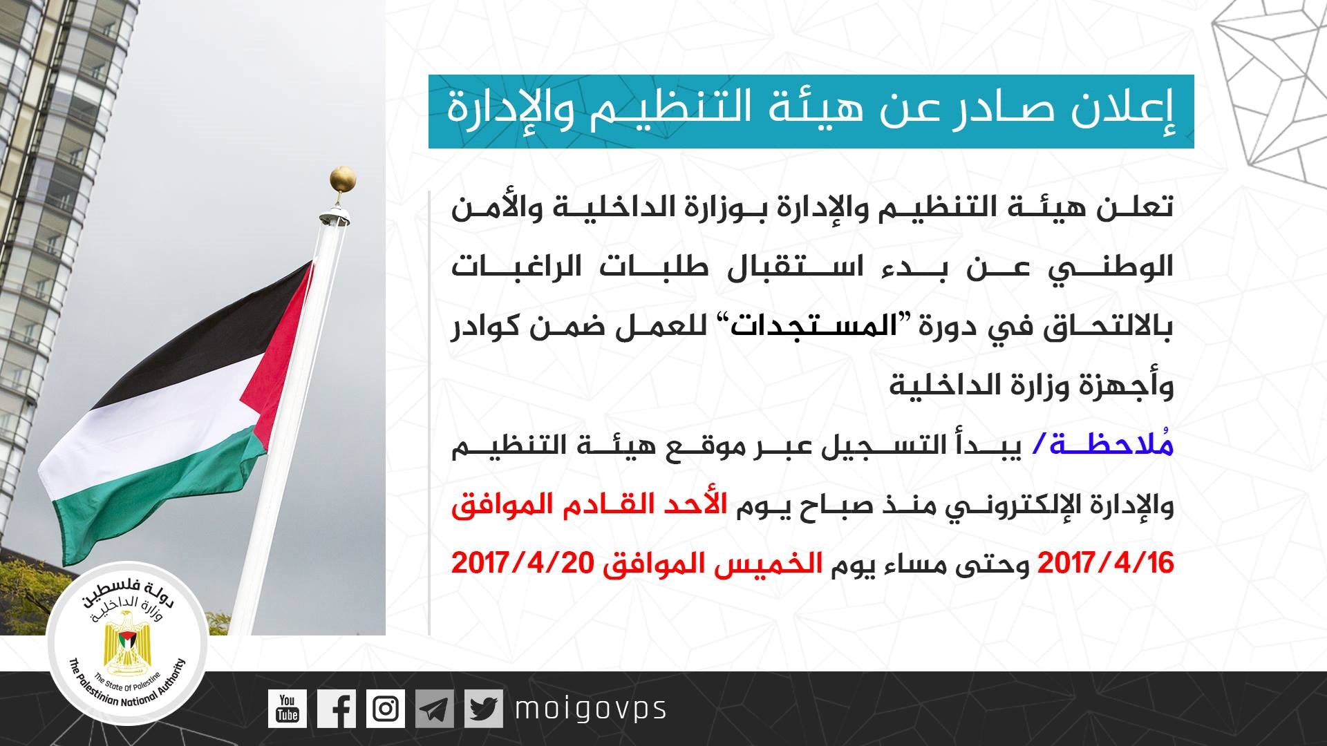 لوزارة الداخلية والأمن الوطني، عن فتح باب التسجيل للالتحاق بدورة المستجدات للعمل