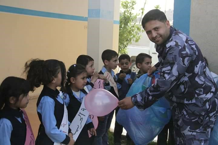 وحفظ النظام وزعت الحلوى والألعاب والبالونات على الأطفال لإدخال السرور على