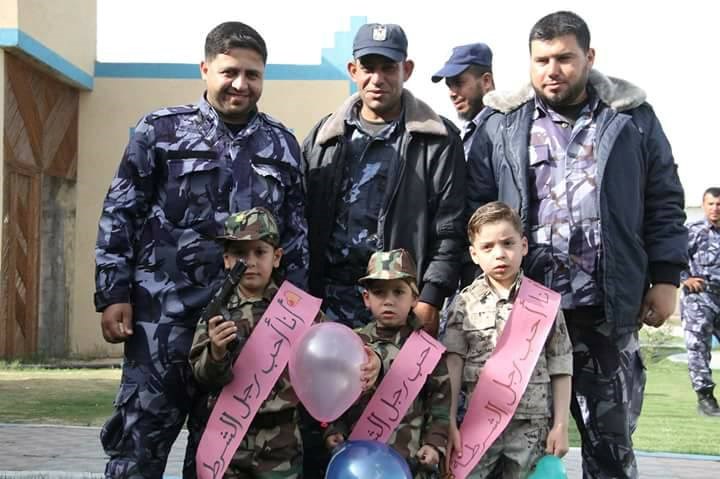 على المكاتب والجلوس مع أفراد القوة في جو يسوده الاندماج بين الطفل ورجل الشرطة.