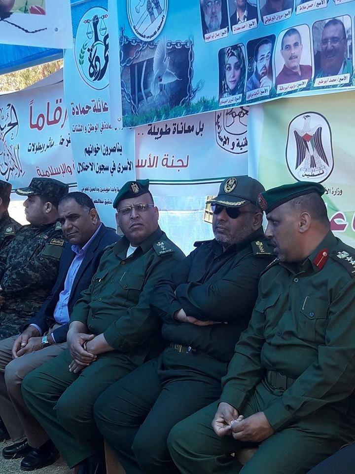 من ناحيته، قال قائد قوات الأمن الوطني العميد نعيم الغول إن شعبنا بكافة فئاته وقواه يساندون قضية الأسرى، مستدركاً "رسالتنا لأسرانا أننا معكم ونقف بجانبكم في جميع المطالب العادلة التي أنتم مضربون من أجلها في معركة الكرامة".