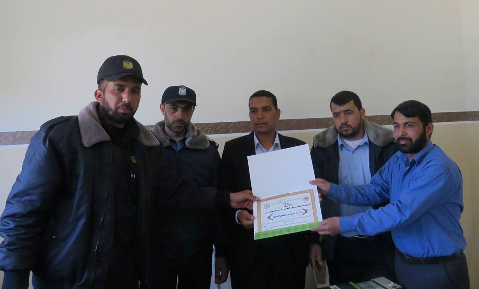 الرائد ياسر هويدي مسؤول التدريب بشرطة خان يونس شكره لمدرب الدورة الاستاذ عبد الله