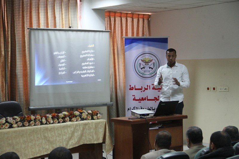 مناقشة الأبحاث بحضور كلٍ من عميد كلية الرباط د. كمال تربان وعميد البحث العلمي