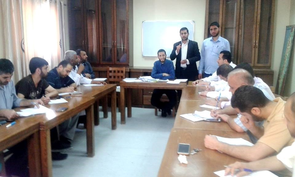 امتحان للملتحقين بالدورة في إحدى قاعات المستشفى، حيث يحاضر في الدورة -التي تعتبر