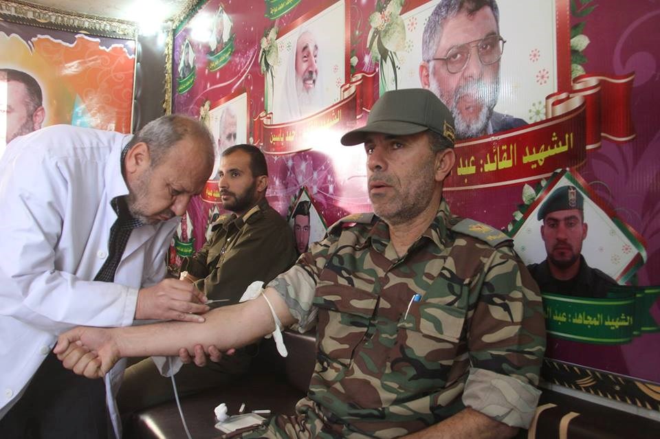 للتبرع بالدم، بمقر اللواء على الحدود الفلسطينية المصرية برفح جنوبي قطاع غزة.