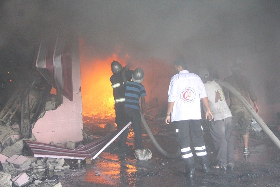 لألسنة النيران من التمدد إلى مخازن تموينية تتبع لوكالة غوث وتشغيل اللاجئين الفلسطينيين
