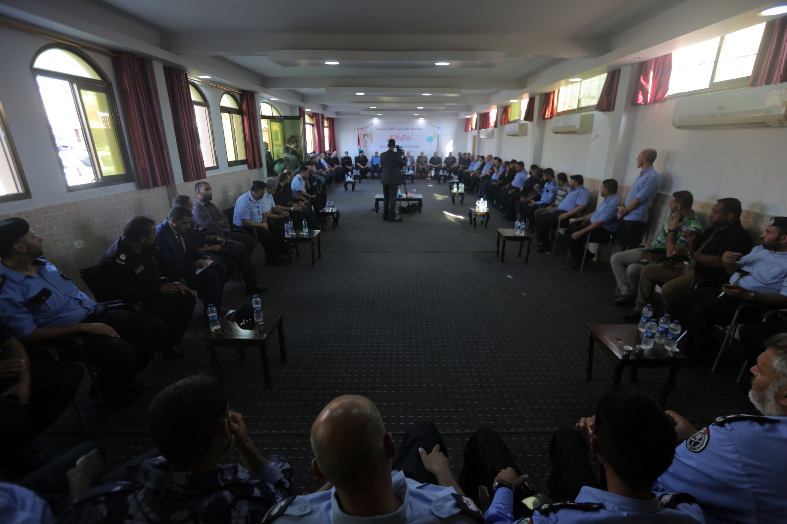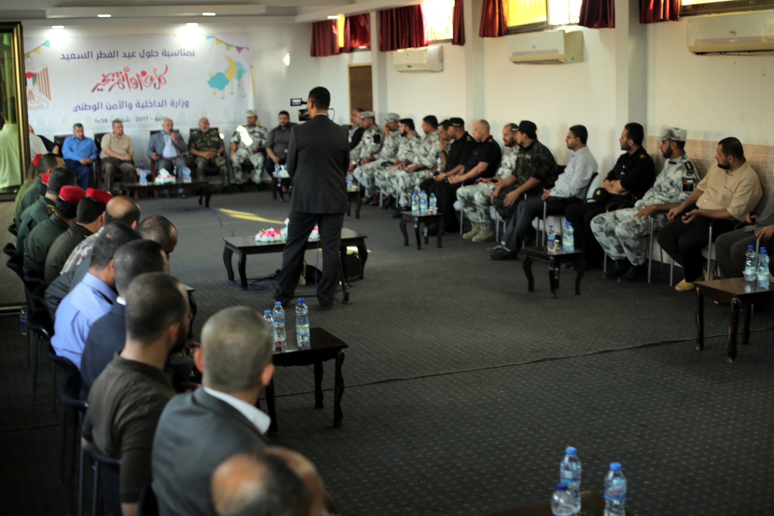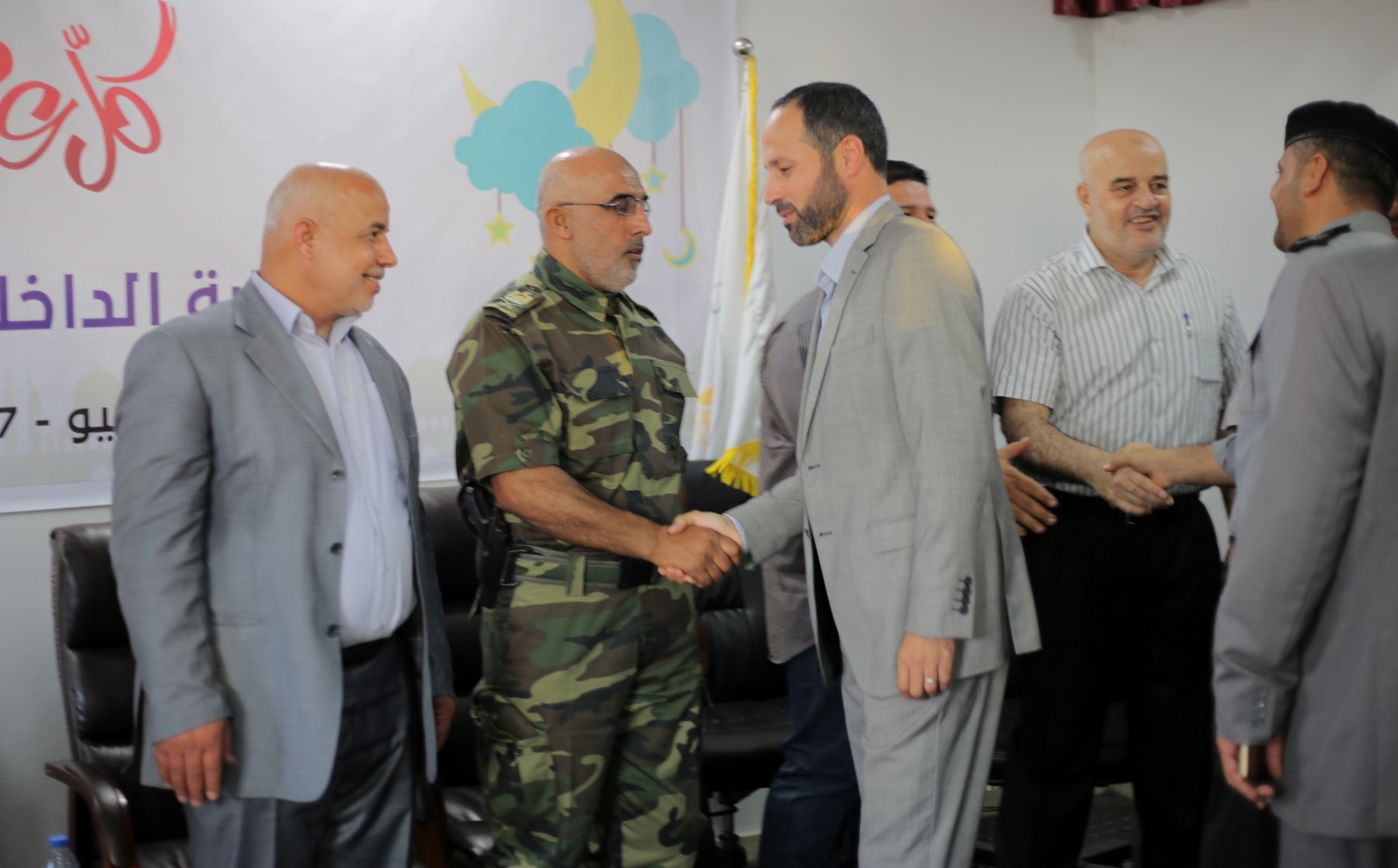 وشارك في اللقاء كل من رئيس قطاع الشئون الأمنية اللواء توفيق أبو نعيم وأ. سامي نوفل مساعد رئيس قطاع الشئون الأمنية، والوكيل المساعد أ. ماهر أبو صبحة واللواء جمال الجراح مدير عام الاتحاد العسكري الرياضي، ولفيف من قادة الأجهزة الأمنية والإدارات المركزية.