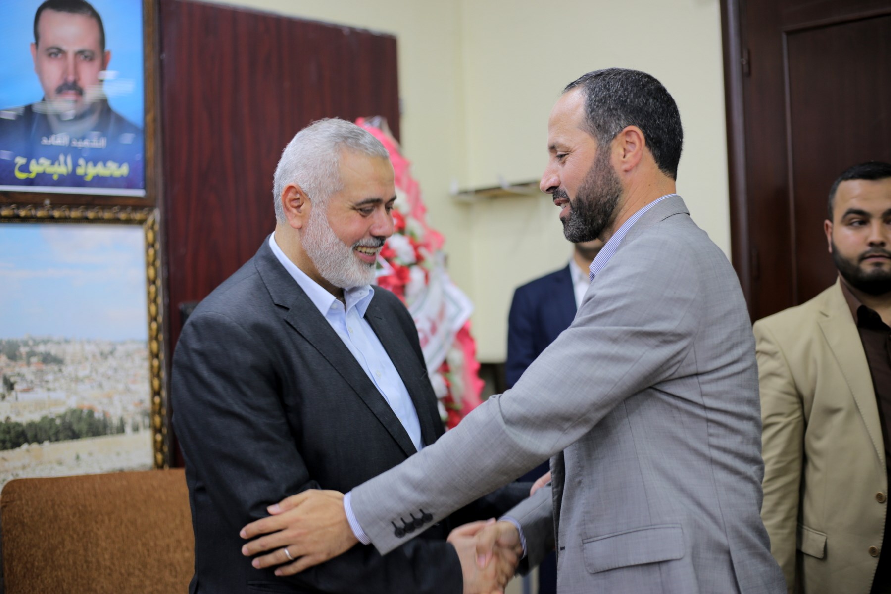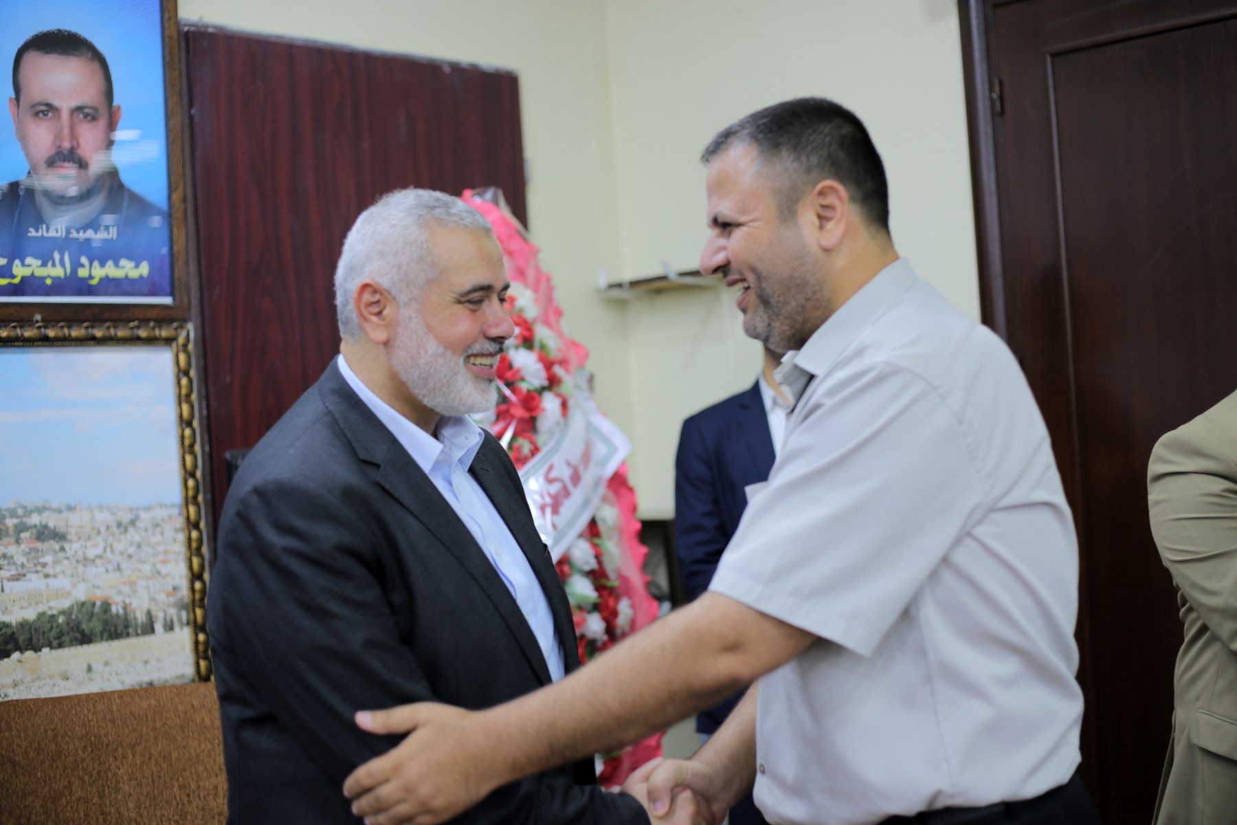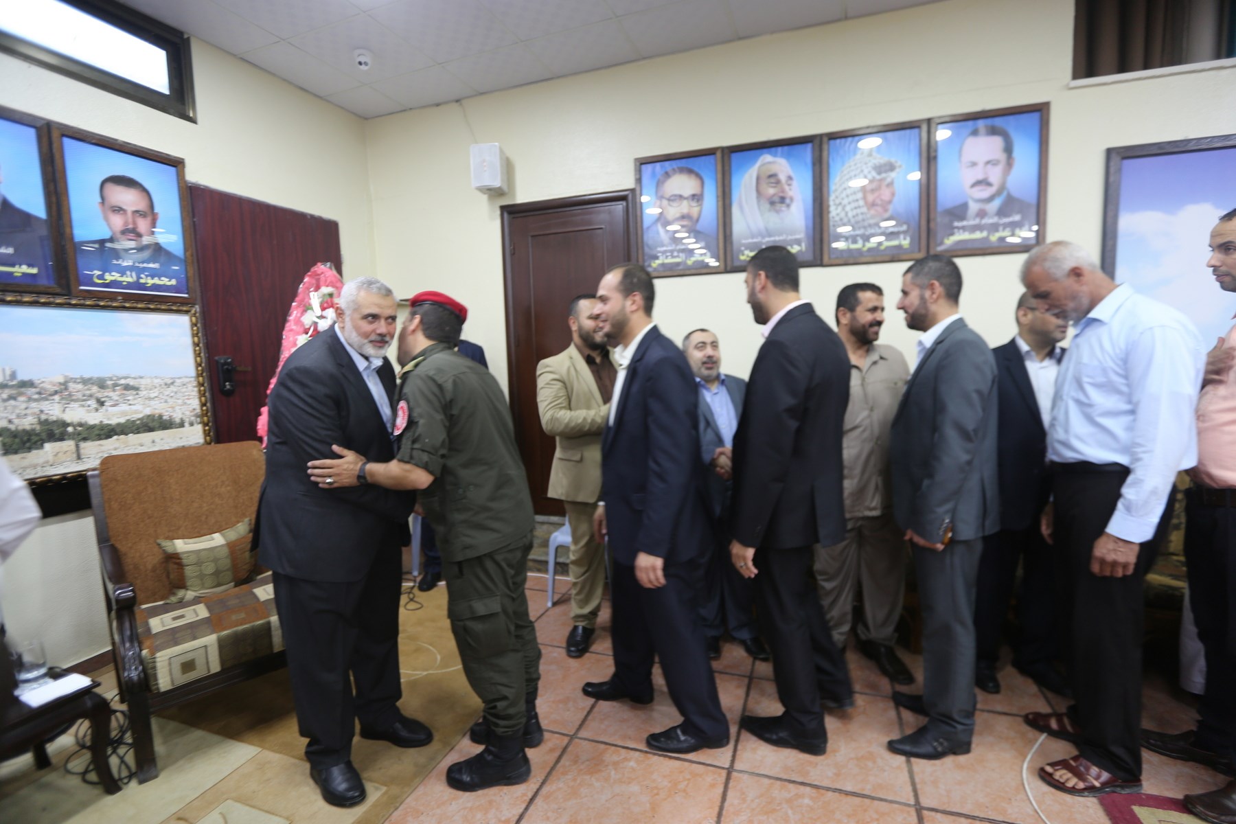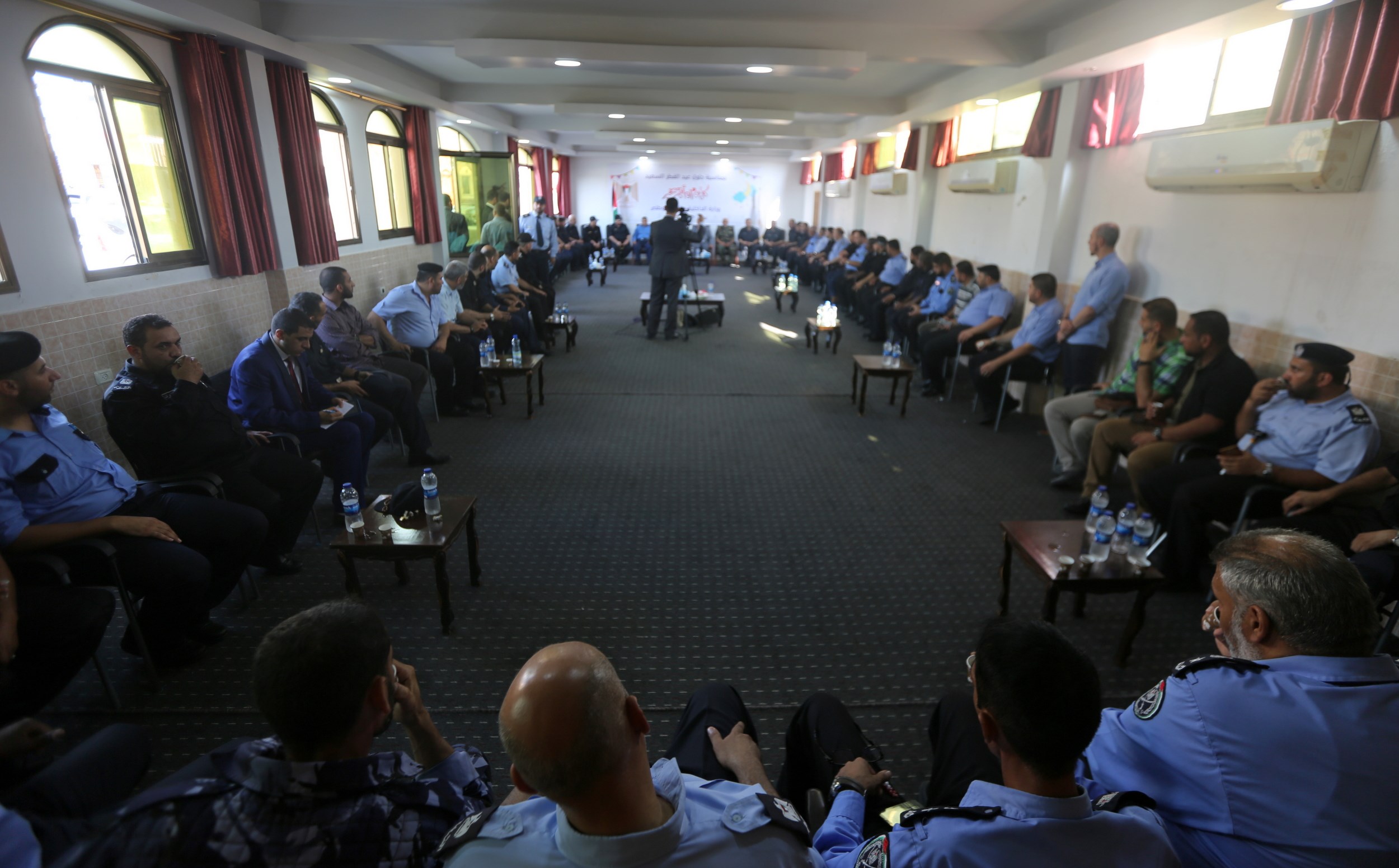 وشارك في اللقاء كل من رئيس قطاع الشئون الأمنية اللواء توفيق أبو نعيم وأ. سامي نوفل مساعد رئيس قطاع الشئون الأمنية، والوكيل المساعد أ. ماهر أبو صبحة واللواء جمال الجراح مدير عام الاتحاد العسكري الرياضي، ولفيف من قادة الأجهزة الأمنية والإدارات المركزية.