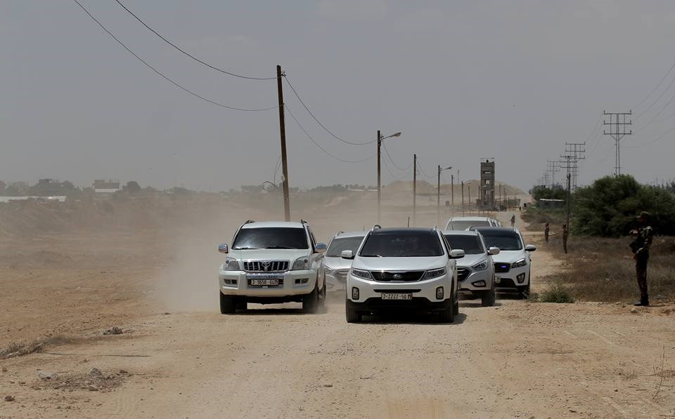 وضم الوفد كلاً من رئيس اللجنة الإدارية الحكومية عبد السلام صيام ورئيس حركة حماس في قطاع غزة يحيى السنوار، حيث كان في اسقبالهما كل من اللواء توفيق أبو نعيم رئيس قطاع الأمن بالإضافة إلى اللواء ركن حسين أبو عاذرة قائد قوات الأمن العام والعميد محمد أبو زايد مدير عام هيئة المعابر والحدود.