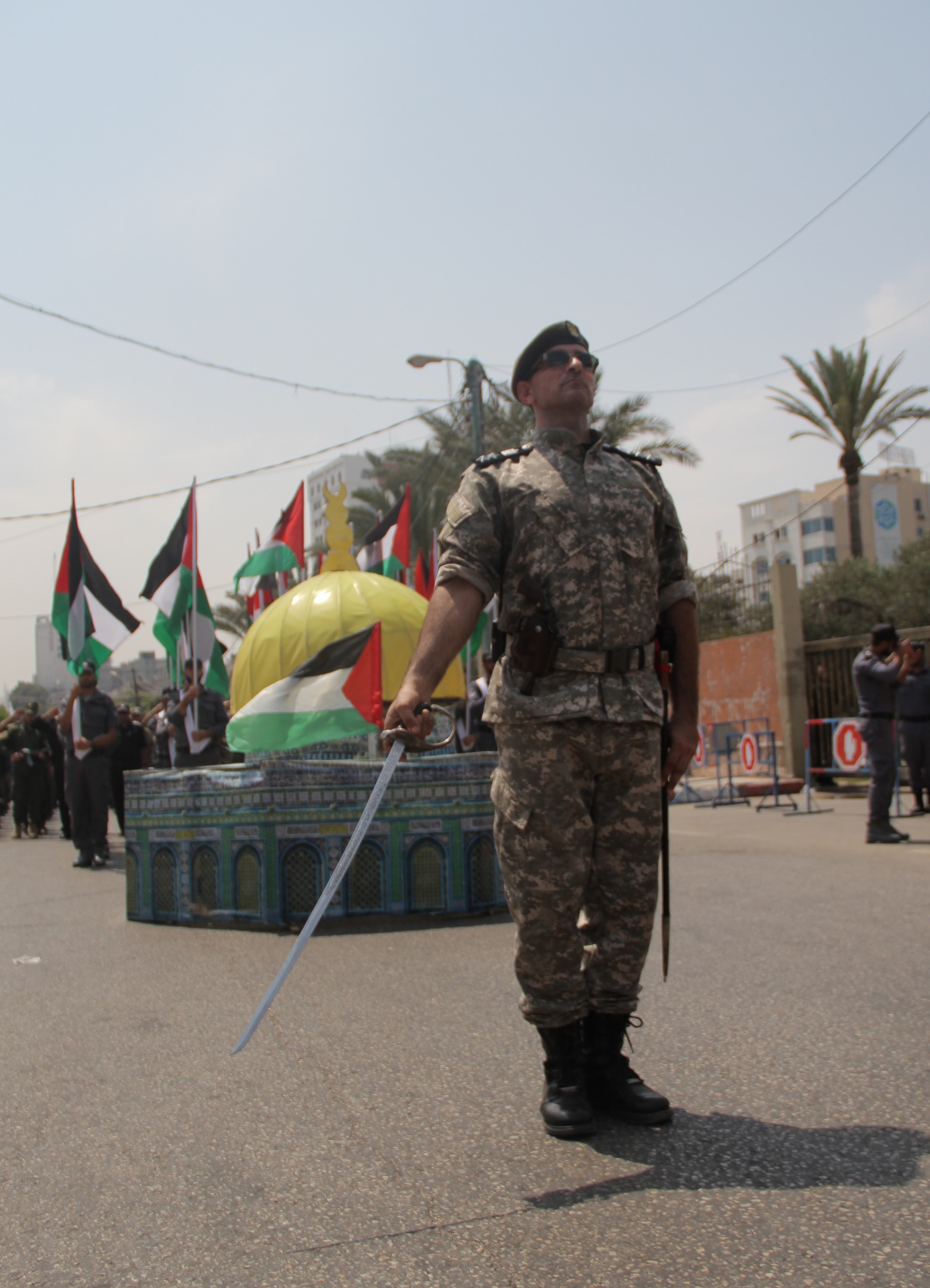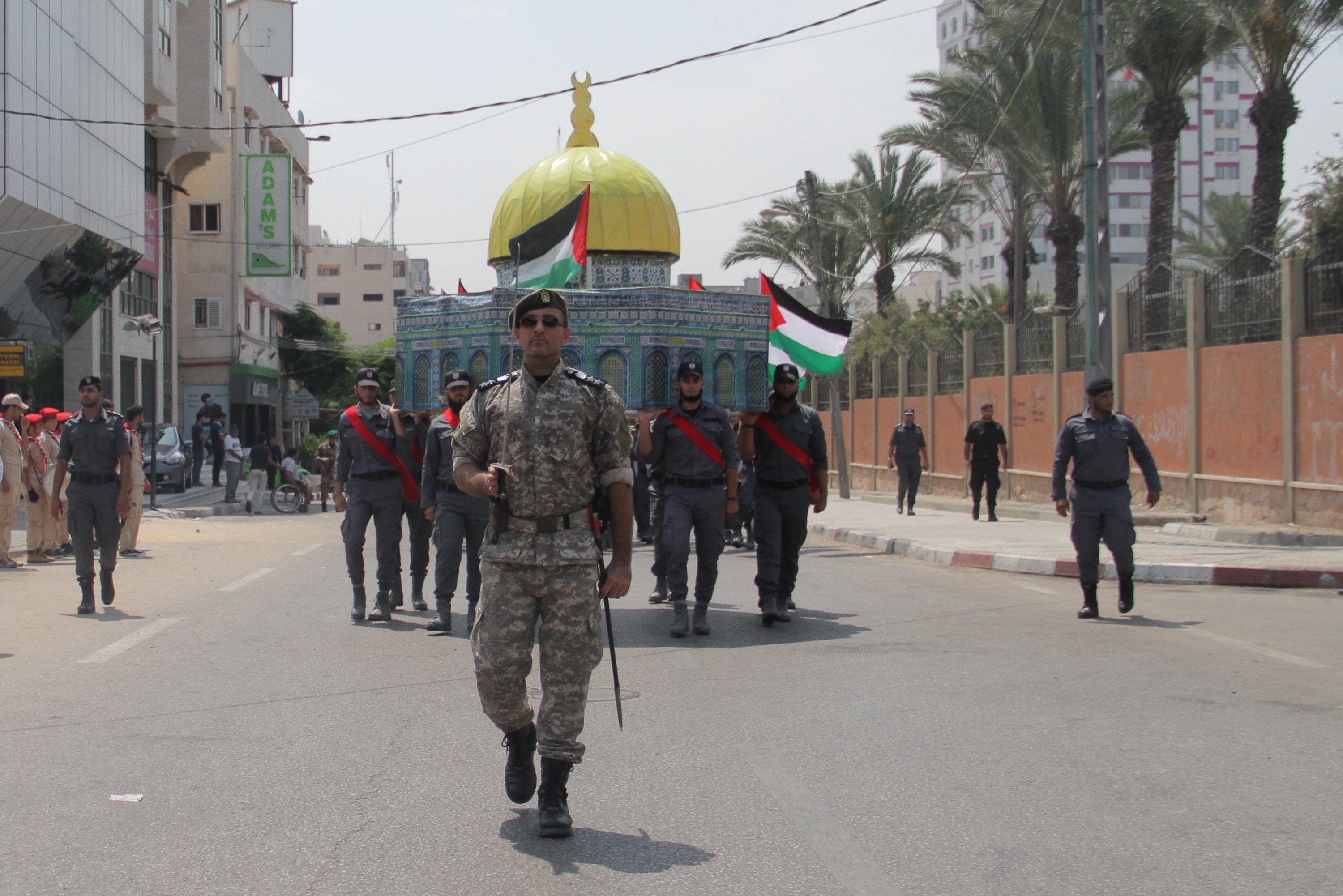 وانطلق الاستعراض العسكري من ساحة السرايا وسط مدينة غزة باتجاه