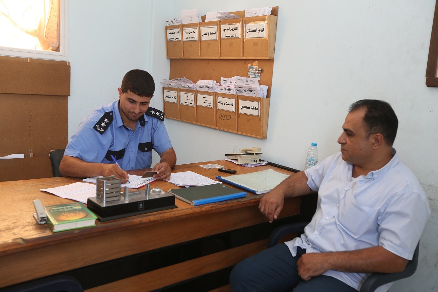 ومن داخل مركز شرطة الشاطئ الواقع شمال مخيم الشاطئ للاجئين شمال غرب