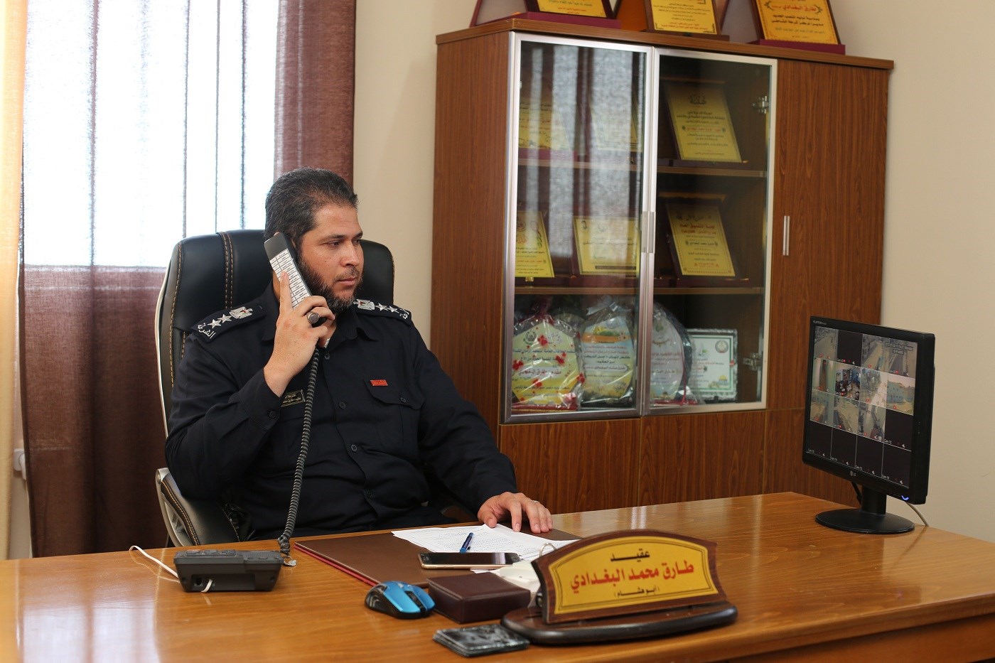 المدينة، يطّلع العقيد البغدادي عن كثب سير عمل أقسام مركزه التي تقدم خدماتها