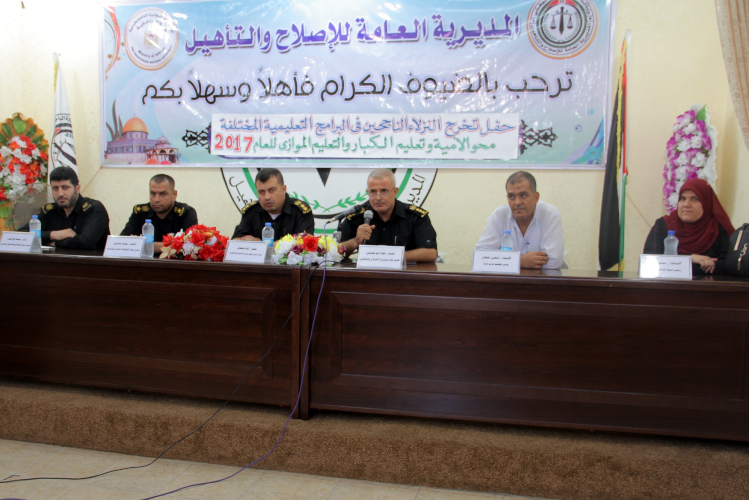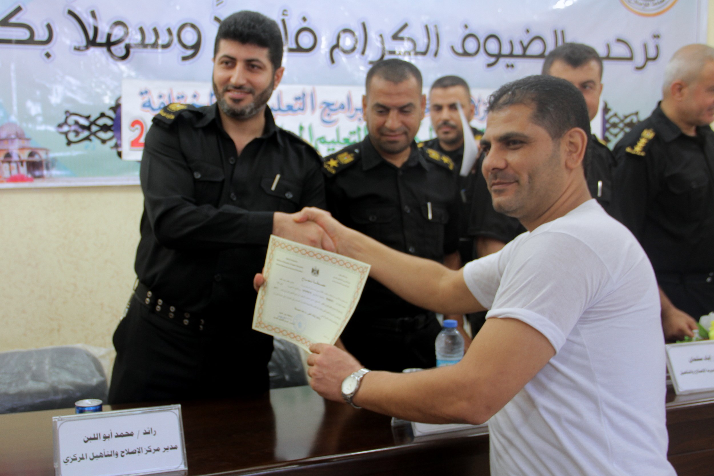 حفل التخريج الذي أقيم في مركز تأهيل وإصلاح غزة "الكتيبة" كلٌ من