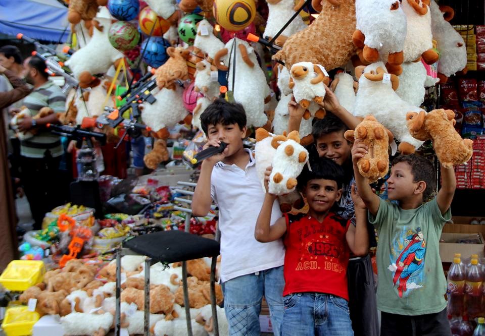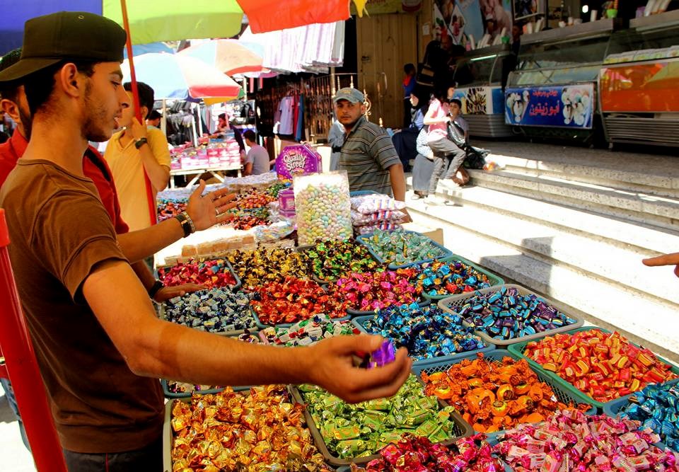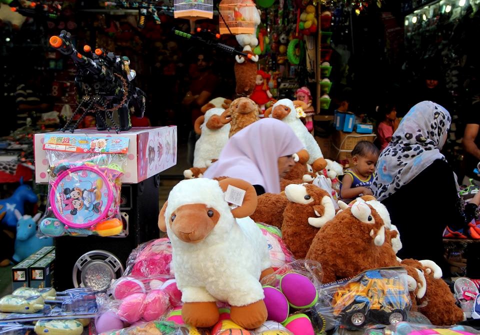 التي تعلو في الأسواق تستعد غزة لاستقبال العيد حيث يُقبِل المواطنون على شراء احتياجاتهم،