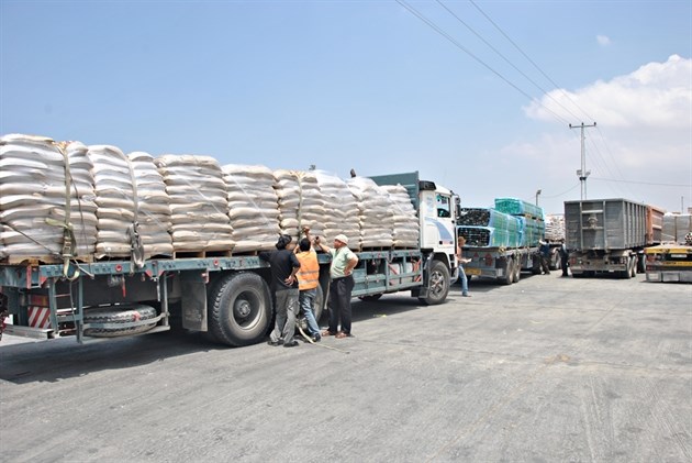 معبر كرم أبو سالم التجاري لإدخال 510 شاحنة محملة بالبضائع التجارية والزراعية والمساعدات.